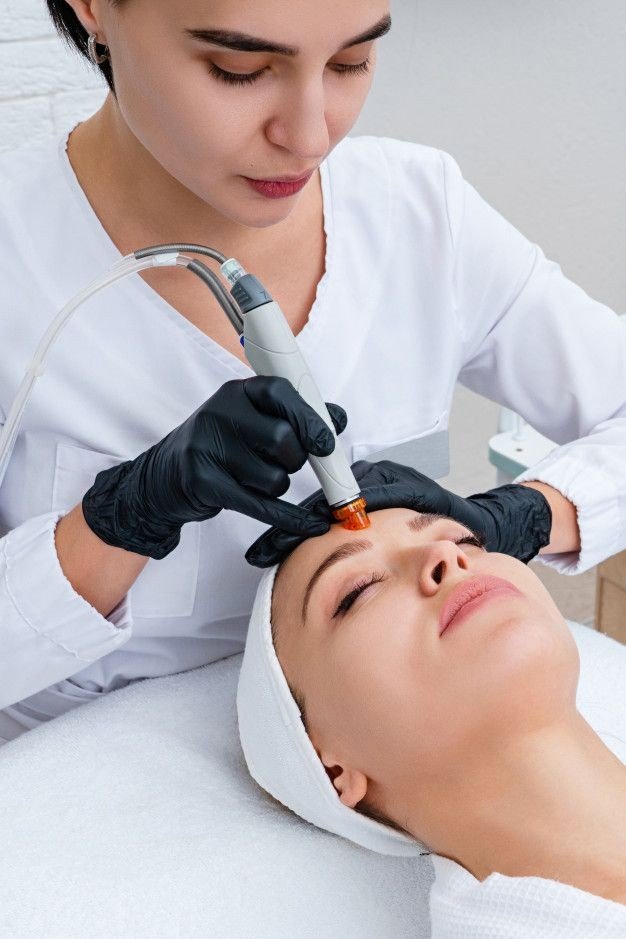 الجلد فيها بيتنضف عن طريق ضخ الميا في المسام وشفطها فنفس الوقت