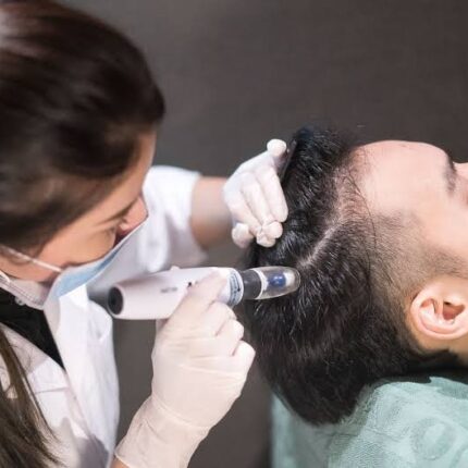 كورس انبات الشعر من الفراغات وعلاجه من التساقط بنستخدم فيه ميزوثيرابي بيحتوي علي خلايا جزعيه وفيتامينات وبايوتين اللي بتحفز نمو